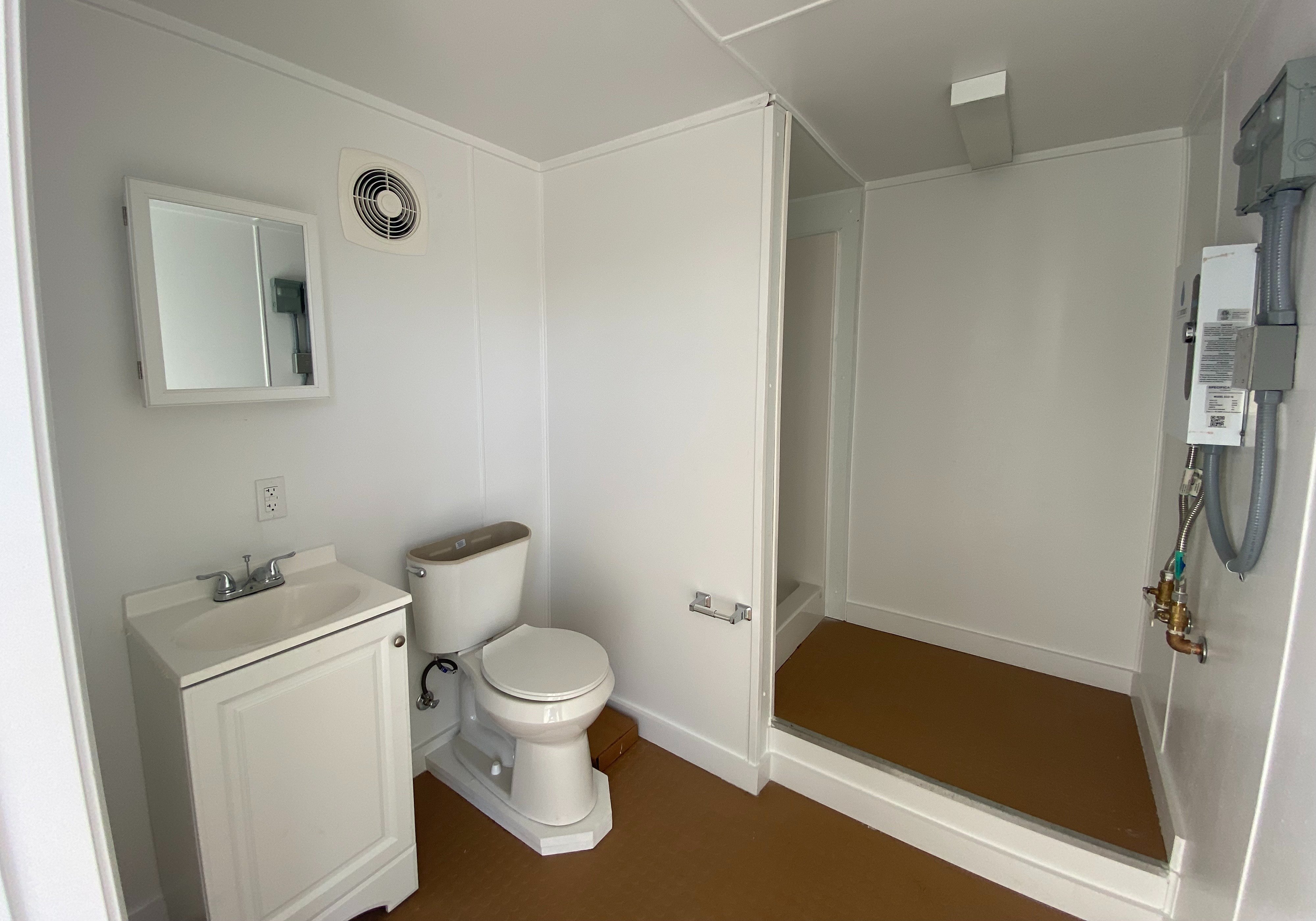 - One 3-foot by 3-foot shower stall